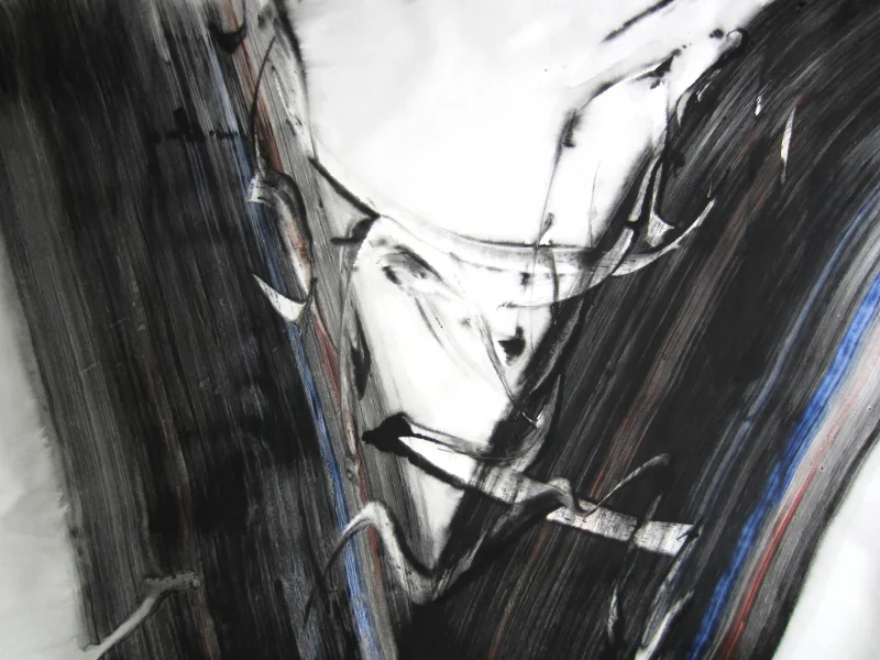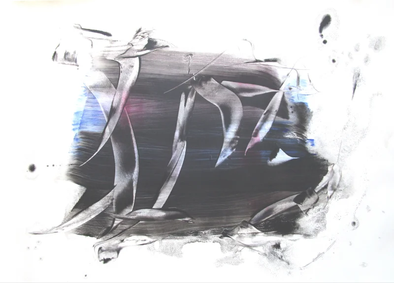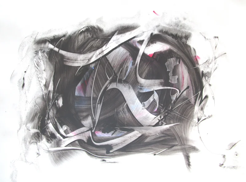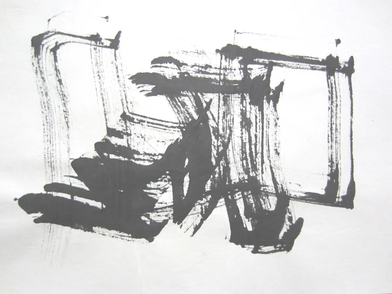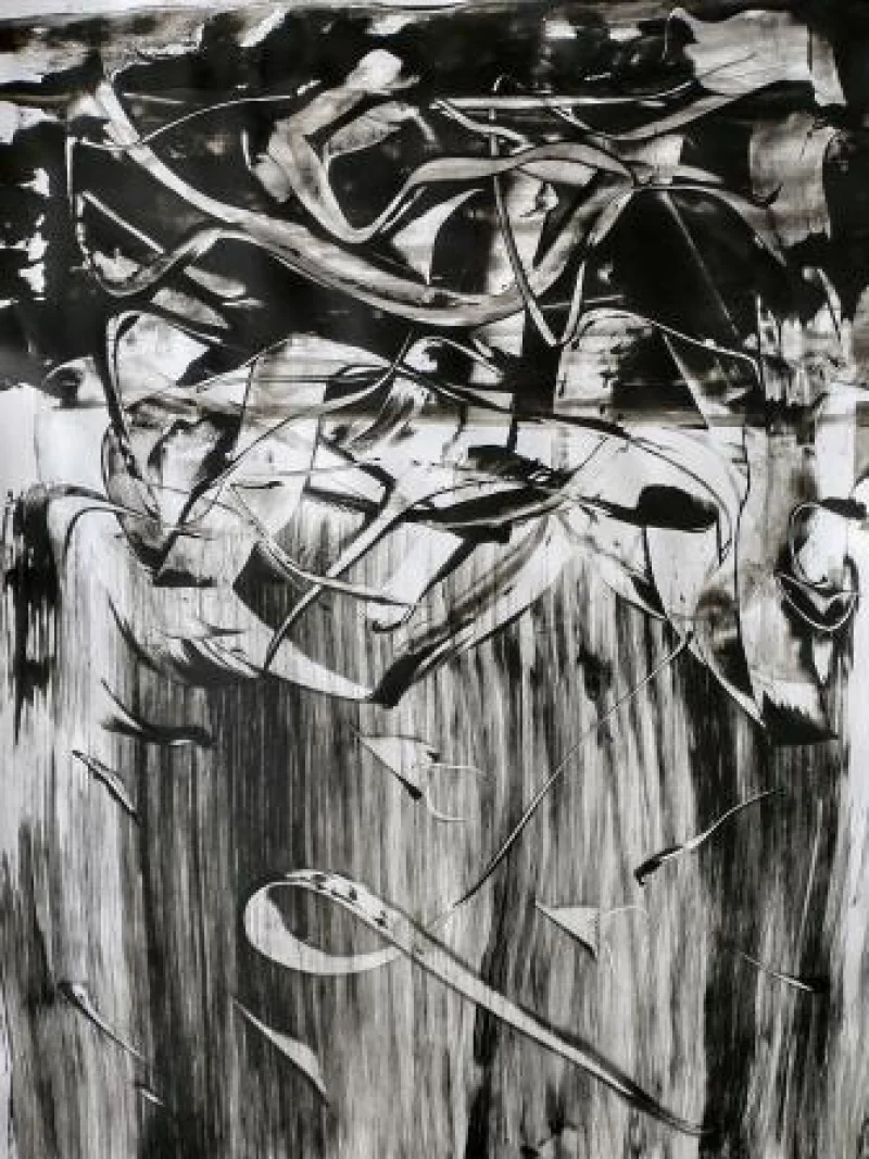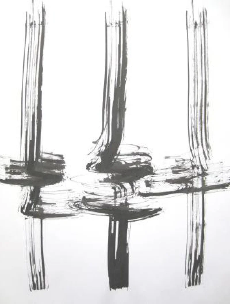 Erst in meiner Lebensmitte erwachte meine künstlerische Kreativität, konkret in der Begegnung mit Werken von K.O Götz. Das war die Art Kunst, die ohne Umwege zu mir sprach. Ich versuchte mich mit gestischer Malerei mit verschiedenen Werkzeugen, am wenigsten mit Pinsel. Einige Jahre habe ich nur mit Tusche gearbeitet, auch hier viel experimentiert. Ich liebe schwarz mit allen seinen Abstufungen. Mich interessiert aber auch, wie es mit anderen Farben interagiert.